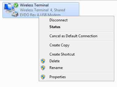 4. Klik kanan wireless terminal, dalam hal ini wireless modem kemudian pilih properties.